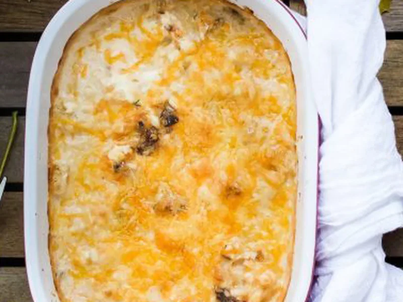 Keto Creamy Scalloped Cauliflower with Mushrooms