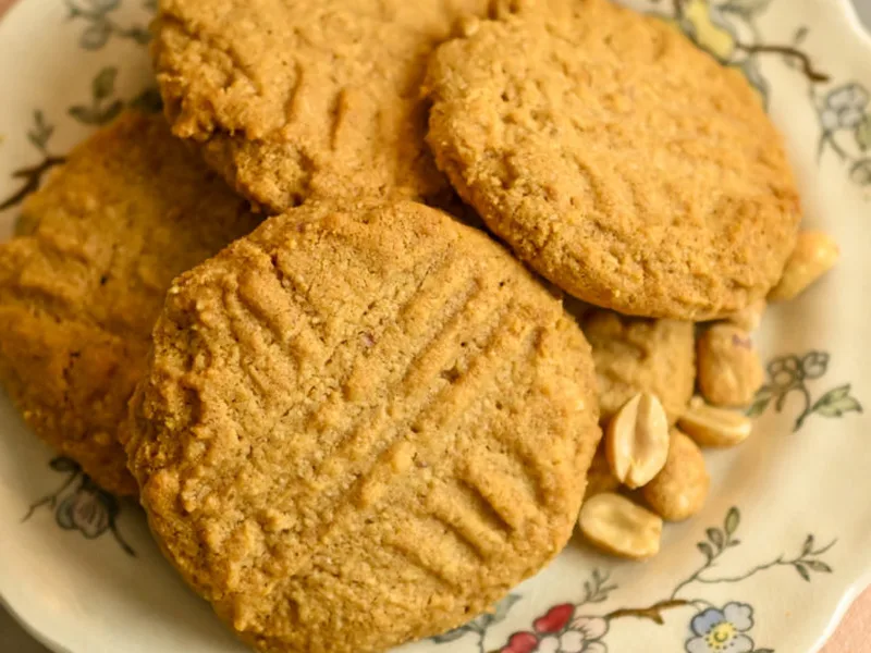 Low-carb peanut butter cookies made with almond flour and sugar substitute, perfect for anyone following a ketogenic or sugar-free diet. These cookies deliver rich, nutty peanut flavor with a tender crumb and crispy edges, all without traditional flour or refined sugar. The combination of natural peanut butter and softened butter creates a decadent texture, while almond flour adds structure and a subtle nuttiness that complements the peanut base. The classic fork-pressed crisscross design makes them visually appealing and instantly recognizable. Ideal for keto dieters, diabetics, or anyone reducing sugar intake who still wants satisfying homemade cookies. Serve them as an afternoon snack, dessert, or part of a keto-friendly dessert spread. This version stands apart by using all-natural peanut butter without added sugars and relying entirely on sugar substitutes, making them genuinely low-carb without artificial sweeteners dominating the taste.
