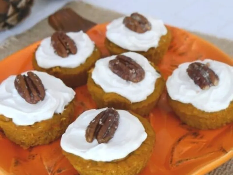 Six tender, spiced pumpkin muffins built on almond flour and pumpkin puree, sweetened with keto-friendly Lakanto and topped with tangy maple cream cheese frosting and candied pecans. Perfect for low-carb breakfast or dessert, these deliver fall flavors without blood sugar spikes. The combination of pumpkin pie spice and vanilla creates warmth while heavy cream adds richness that keeps these muffins moist despite the absence of regular flour.