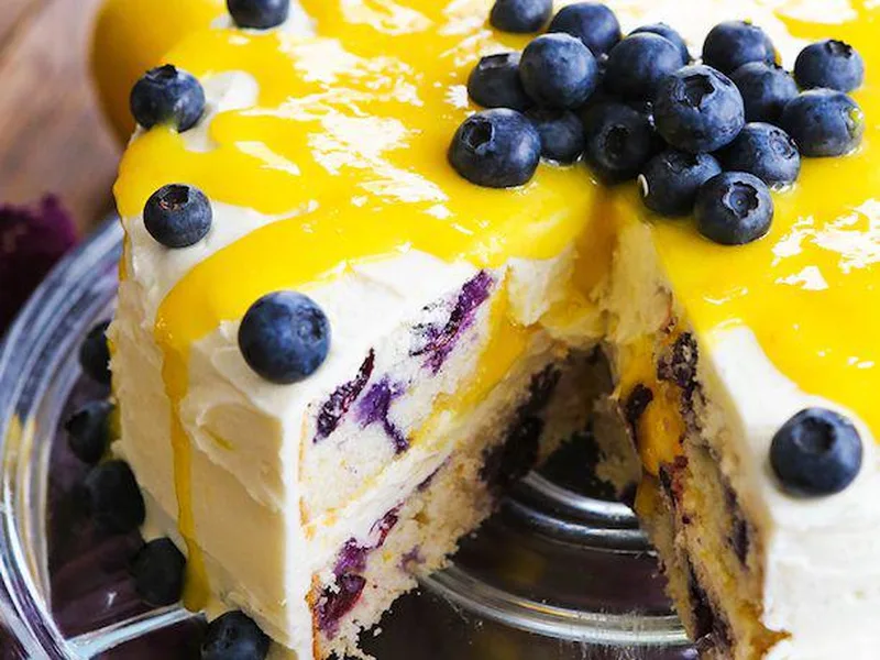 A sophisticated two-layer cake featuring bright lemon flavor throughout, with fresh blueberries folded into tender vanilla-based cake, topped with creamy lemon buttercream, tangy lemon curd, and a dramatic center cutout filled with frosting. The combination of zest, juice, and curd creates layers of citrus intensity balanced by sweet blueberries and rich butter. Serve at afternoon tea, celebrations, or warm weather gatherings. This version uses a hollow center technique for visual appeal and extra frosting pockets.