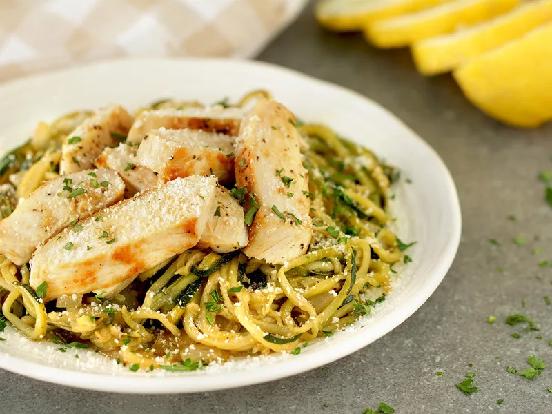 Keto Lemon Garlic Chicken Over Spiralized Zucchini