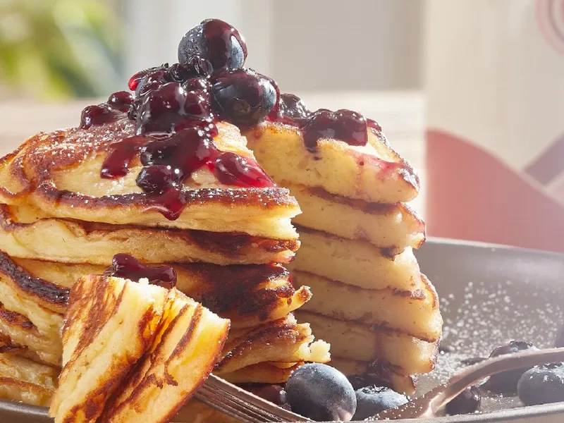 Lemon ricotta pancakes deliver a delicate, custardy interior with subtle citrus brightness, enhanced by tangy mascarpone butter and a warm blueberry compote. The ricotta creates an impossibly tender crumb while lemon juice and zest provide fresh flavor without overpowering sweetness. These pancakes suit weekend brunch gatherings, special breakfasts, or when you want something more refined than standard griddle cakes. What sets this version apart is the combination of ricotta's creamy richness with the mascarpone butter topping—a restaurant-quality touch that transforms simple pancakes into an impressive dish. The homemade blueberry sauce, thickened with cornstarch and brightened with fresh lemon, complements the cake's subtle vanilla notes. Perfect for serving to guests or treating yourself to something memorable.