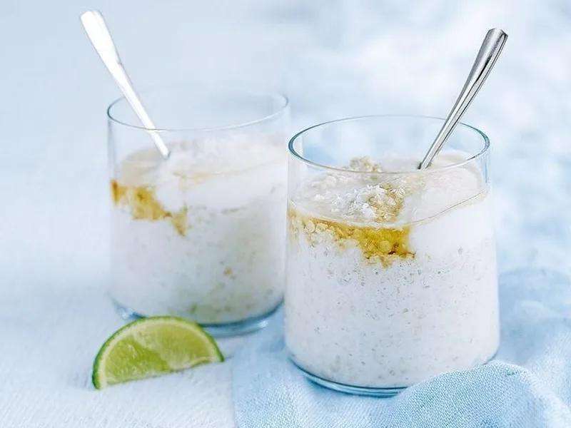 No-cook overnight oats combining rolled oats, almond milk, and Greek yogurt, brightened with fresh lime juice and toasted coconut. Mixed the night before and finished in the morning with extra honey and yogurt for a refreshing, creamy breakfast.