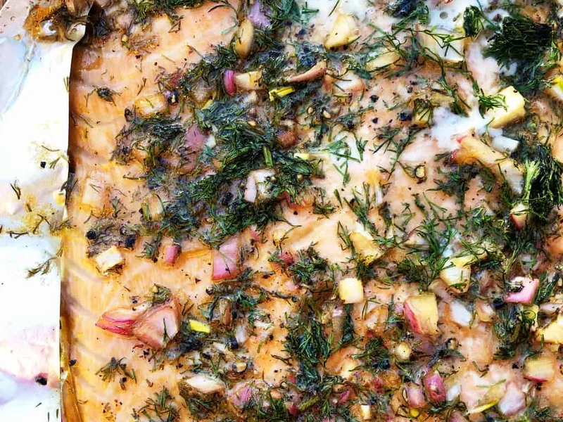 Tender grilled salmon topped with a fragrant mixture of fresh lime juice, chopped dill, caramelized shallots, and brown sugar that creates a perfect balance of citrus brightness and earthy sweetness. The low-temperature grilling method ensures incredibly moist, flaky fish that's ideal for summer dinners or elegant entertaining. What sets this version apart is the foil tray technique that prevents sticking while allowing the flavors to meld beautifully as the salmon cooks gently over indirect heat.