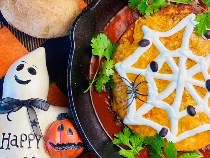Frankenstein's Triple Layer Enchilada Quesadilla stacks three crispy flour tortillas into one towering, cheesy creation that defies traditional boundaries. This playful fusion combines the comfort of quesadillas with enchilada flavors and tater tot crunch, creating unexpected textural contrasts. Seasoned ground beef, melted pepper jack and cheddar, warm refried beans, and crispy fried potato cylinders layer between toasted tortillas before the whole thing bakes under enchilada sauce. It's unapologetically indulgent comfort food for those who love bold, messy handheld meals. Serve it as a casual family dinner, game day spread, or late-night shareable. The tater tots enhance this beyond standard quesadillas, adding nostalgic fried texture that keeps the dish interesting from first bite to last.