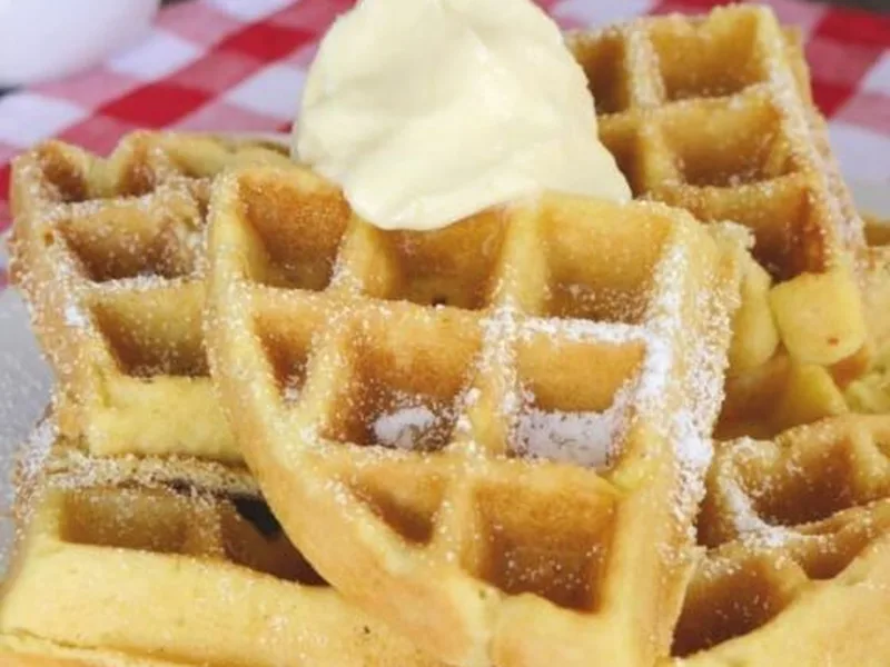 Serve waffles topped with whipped butter.