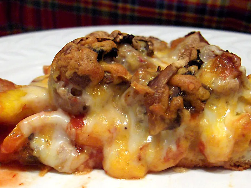 A lean take on classic pizza featuring seasoned turkey sausage, sweet pepper rings, and mushrooms over a crispy crust, finished with melted fat-free mozzarella. The turkey keeps calories in check while Italian seasoning and fresh vegetables deliver satisfying flavor. Quick enough for weeknight dinners, adaptable to any pizza crust preference from homemade to store-bought. This version prioritizes protein and vegetables over heavy cheese and processed meats.