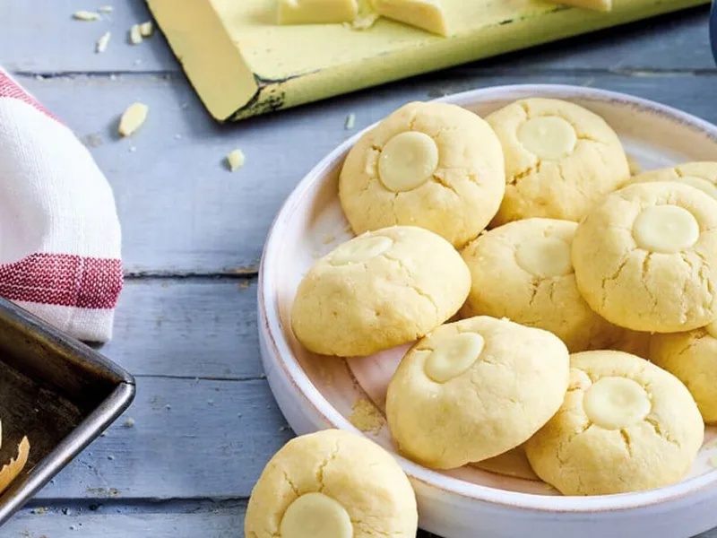 Delicate shortbread cookies filled with melted white chocolate, these macadamia kisses combine buttery, melt-in-your-mouth dough with roasted, salted macadamia nuts for a sophisticated treat. The tender crumb comes from a blend of wheat flour and cornstarch, while the signature indentation holds a glossy white chocolate center. What makes this version special is the contrast between the salty-nutty base and sweet chocolate topping, plus the elegant presentation that looks far more complex than it is. Perfect for afternoon tea, holiday gifts, or impressing guests at gatherings. These are ideal for bakers seeking something refined yet approachable, combining everyday ingredients with a touch of elegance. Serve them fresh or store for days without losing texture, making them reliable for entertaining or batch baking.