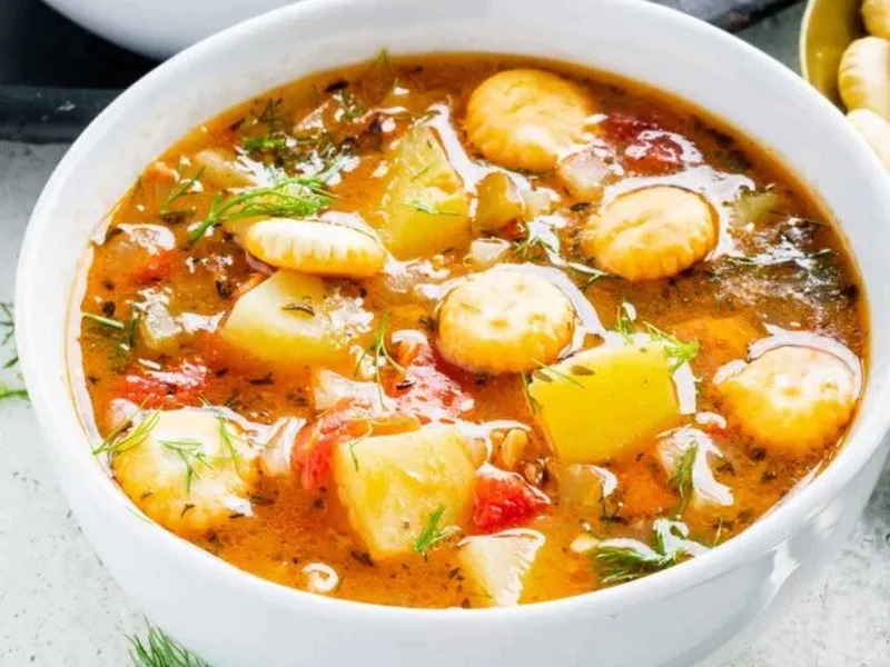 Ladle hot into deep bowls. Top with fennel fronds and crusty bread for dunking. Oyster crackers optional.