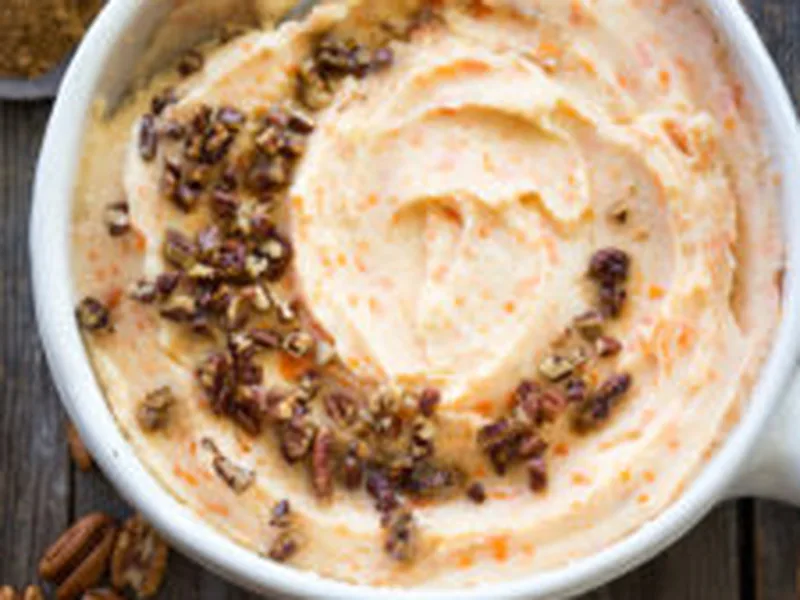 Creamy mashed root vegetables with tender carrots and potatoes, finished with a luxurious toasted pecan and brown butter topping. The optional cinnamon stick adds warmth without overpowering. This comforting side dish works year-round but shines alongside roasted meats or holiday tables. The brown butter-pecan garnish simple mash into something memorable.