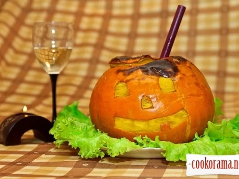 Place the hollowed pumpkin in a baking dish and transfer the stew into it. Cover tightly with the pumpkin cap.