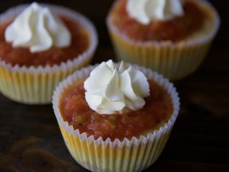 Individual cheesecake bites that transform the classic Mexican dip layered concept into an elegant appetizer. Each bite features a tortilla chip crust topped with creamy avocado-lime cheesecake, melted queso, fresh salsa, and sour cream. The tangy avocado filling provides richness while lime juice adds brightness, making these perfect for parties, game day gatherings, or any time you want to impress guests with a creative twist on familiar flavors. The individual portions make serving easy and allow guests to enjoy all the layers in one perfect bite.