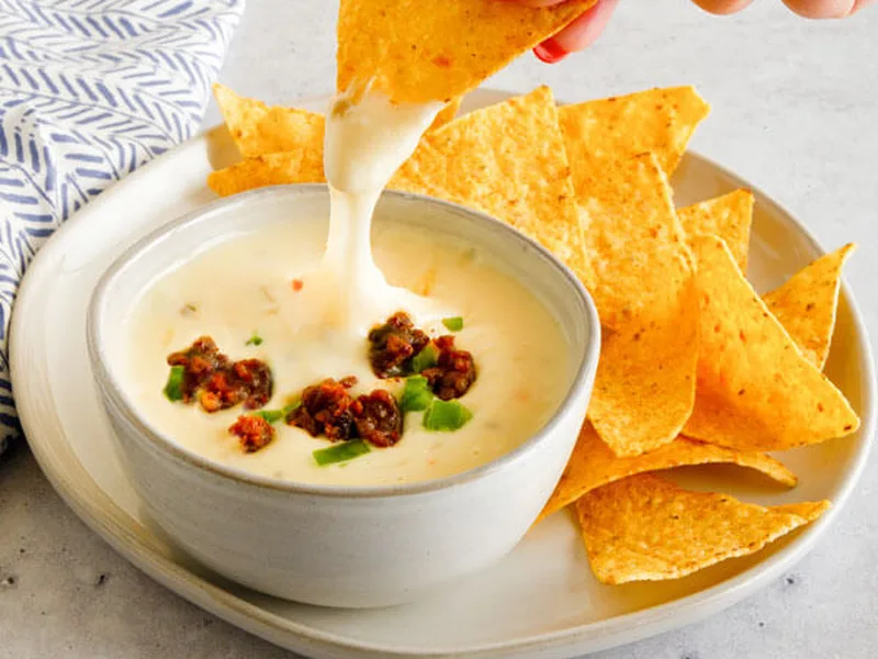 Transfer to a serving bowl or fondue pot to keep warm. Serve with tortilla chips, crackers, or vegetable sticks.