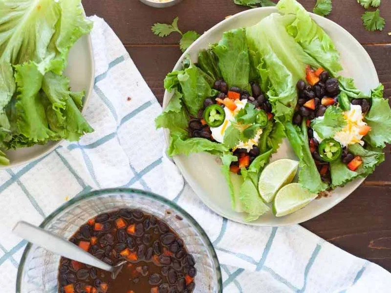 15-Minute Microwave Spicy Black Bean Lettuce Wraps