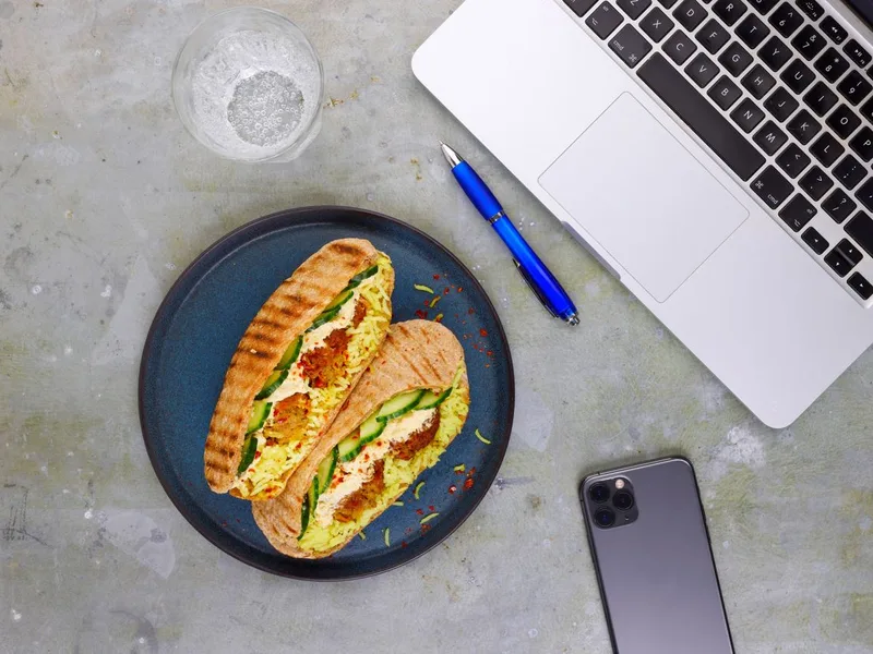 Toasted wholemeal pitta stuffed with microwaved falafel, lemon and herb rice, creamy hummus, and fresh cucumber slices. A quick, satisfying Middle Eastern-inspired lunch that comes together in minutes. Optional chilli flakes add heat.