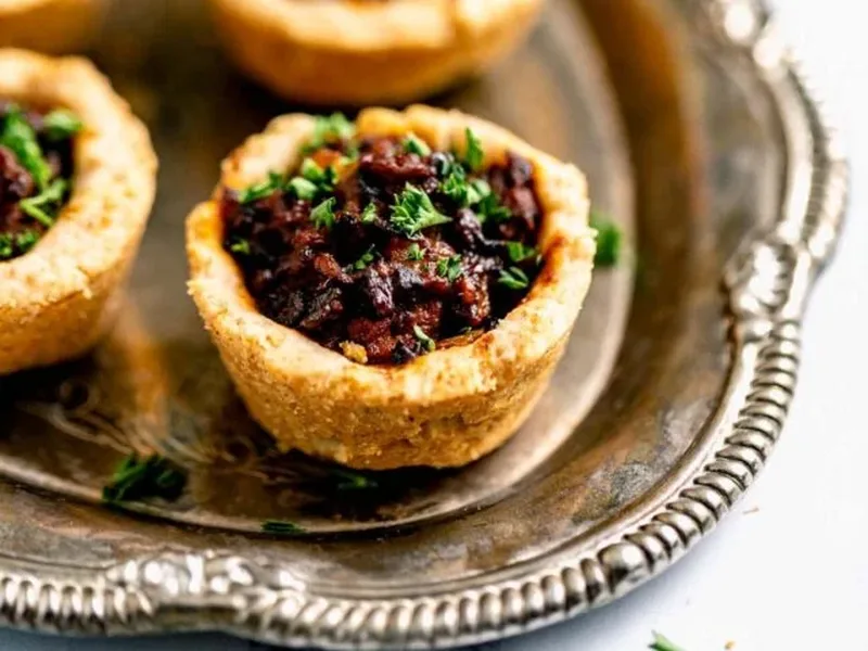 Savory handheld pies combining buttery whole-wheat pastry cups with a rich, umami-forward beef and mushroom filling. The Neufchatel cheese keeps the crust tender while reducing fat, and the beef mixture balances earthiness with subtle sweetness. Perfect for entertaining, cocktail parties, or making ahead for easy entertaining. This simplified version captures Wellington's essence in bite-sized form without the traditional prosciutto and pate.