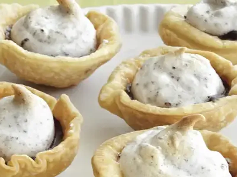 Individual chocolate meringue pies featuring rich chocolate pudding filling topped with billowy meringue and nestled in flaky pastry crusts. Perfect for dinner parties or special occasions when you want an impressive dessert that can be made ahead. The mini size makes portion control easy while the chocolate-studded meringue adds elegant texture. These bite-sized treats combine the classic flavors of chocolate cream pie with the drama of golden meringue peaks.