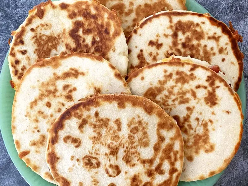 Do not overfill tortillas to avoid cheese leaking and burning in pan.