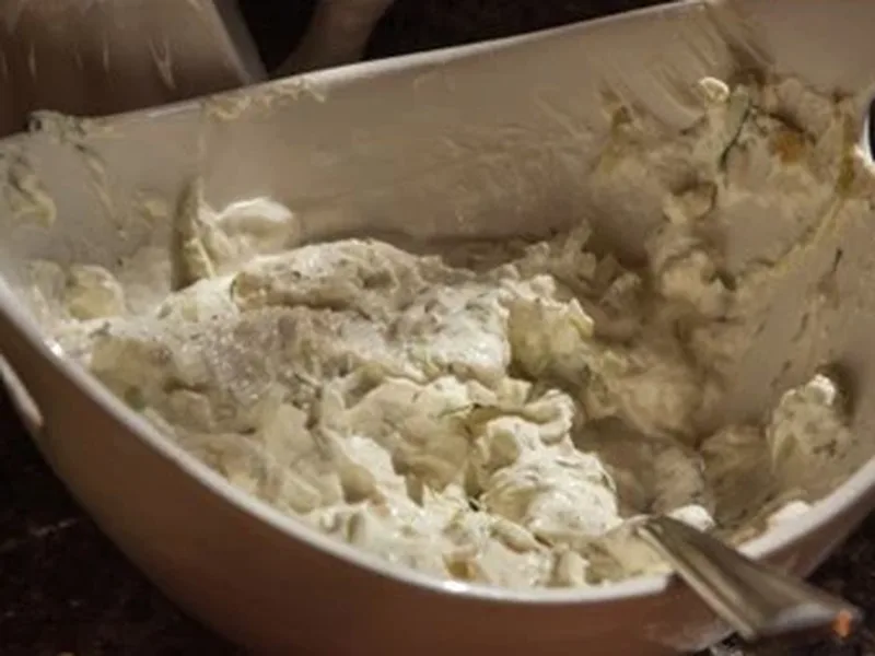 Place Greek yogurt in cheesecloth and squeeze out liquid.