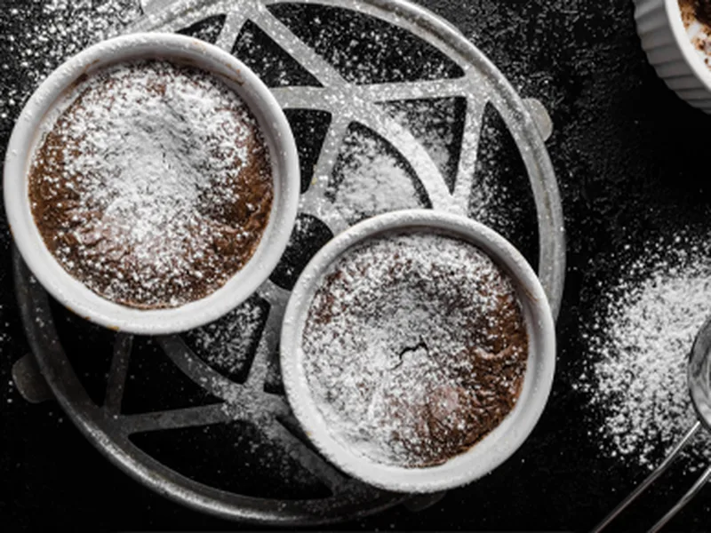 Serve immediately while hot and risen, dust with cocoa powder at table