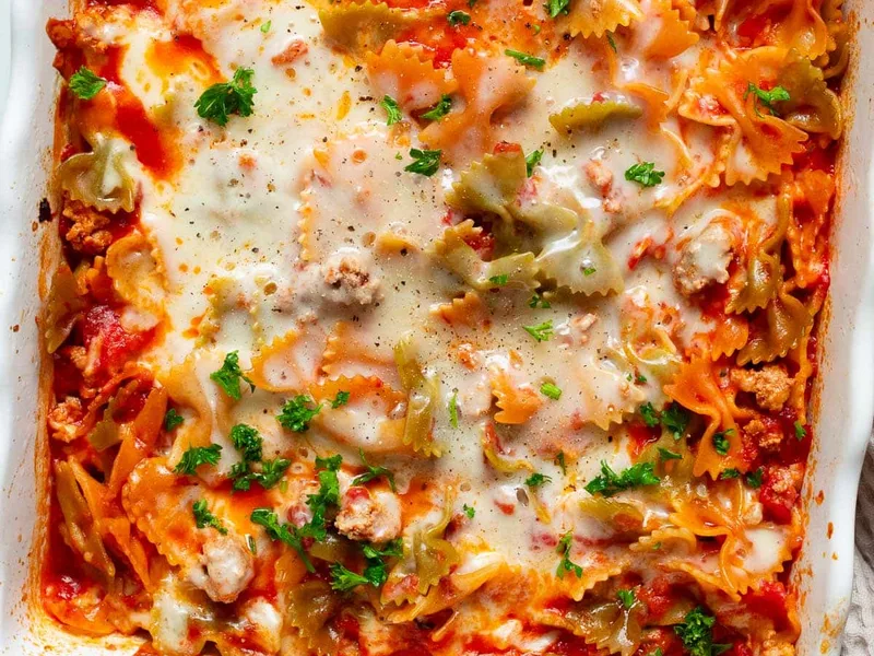 Do not skip the 10-15 minute rest period after baking; it allows residual heat to finish cooking the pasta and lets cheese set.