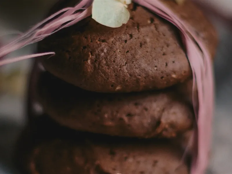 Tender chocolate cookies made with extra virgin olive oil instead of butter, sweetened with honey and rolled in turbinado sugar. Stone-ground whole wheat flour gives these cookies a subtle nuttiness that complements the Dutch-process cocoa. Quick to mix and bake, with a crispy exterior and chewy center.