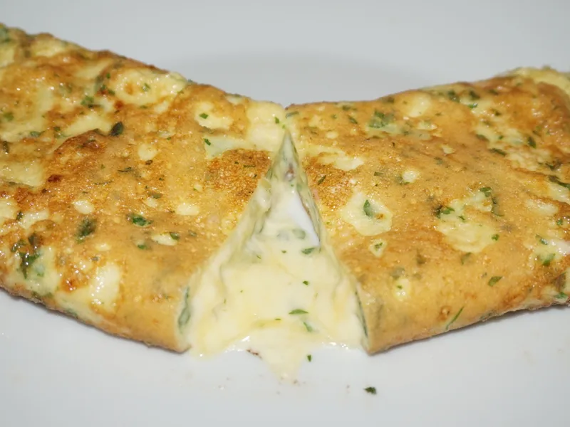 Portuguese-style omelet filled with cream cheese, parsley, and oregano. Eggs are cooked in hot oil and rotated in the pan for even cooking, then folded with the creamy filling. Quick, savory, and perfect for breakfast or light meals.