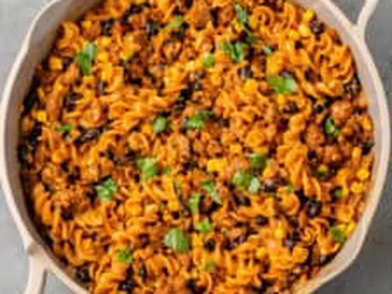 A vibrant one-pot vegan taco pasta combining seasoned plant-based grounds, black beans, corn, and salsa simmered with pasta until tender and topped with melted vegan cheese. This dish merges taco flavors with pasta comfort, delivering bold spices and hearty texture in a single skillet. Perfect for weeknight dinners when you want satisfying, minimal cleanup. The version uses Beyond Meat and Follow Your Heart cheese for richness and authenticity that rivals traditional versions.