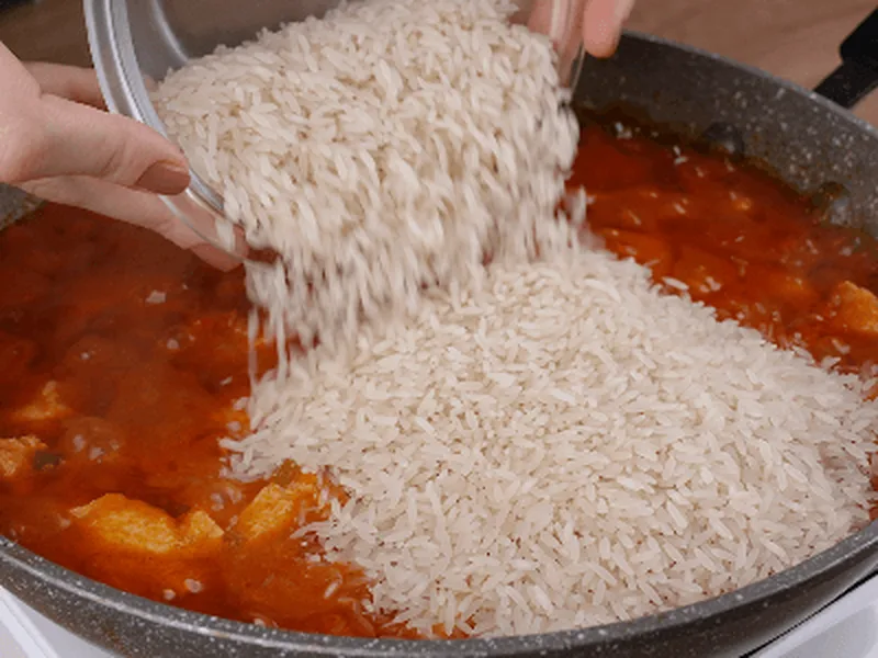 Stir gently when adding rice to prevent breaking grains and ensure even spice distribution.