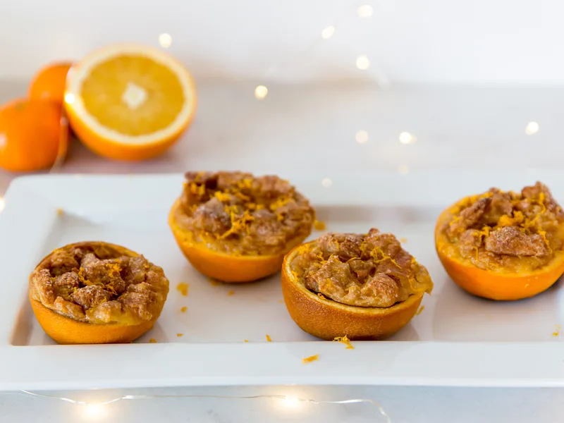 Orange Croissant Bread Pudding in Citrus Shells