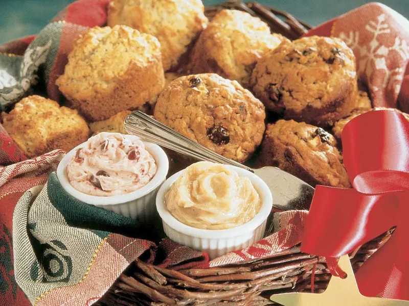 Prepare muffin batter up to 4 hours ahead and refrigerate covered. Bake fresh when ready. Cranberry butter can be made 2 days in advance.