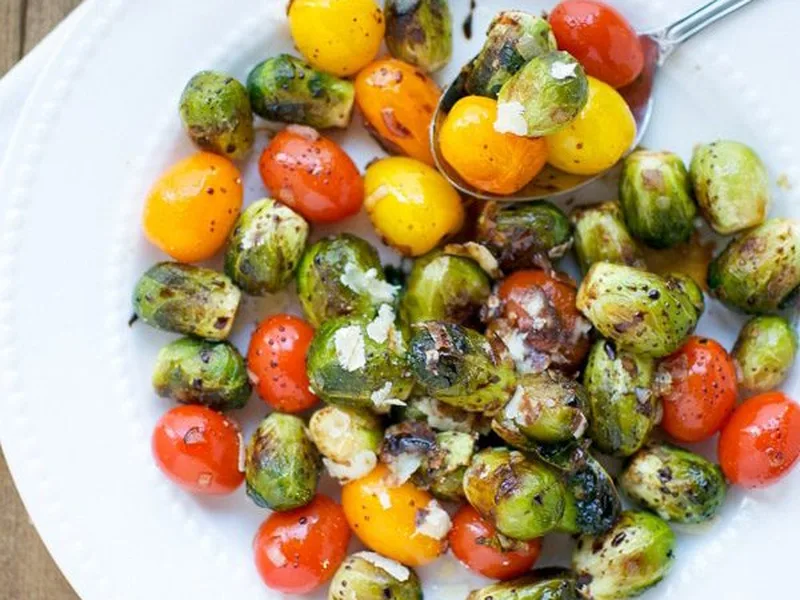 Oven Roasted Brussels Sprouts with Grape Tomatoes