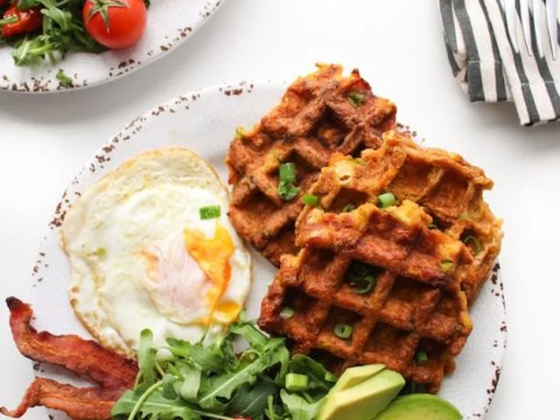 Crispy-edged savory waffles made from grated sweet potato, eggs, and coconut flour. Naturally paleo and gluten-free, these waffles work as a side dish or light meal. Spring onions and garlic powder add savory depth, with a low FODMAP option available by omitting garlic and using only green parts of onions.