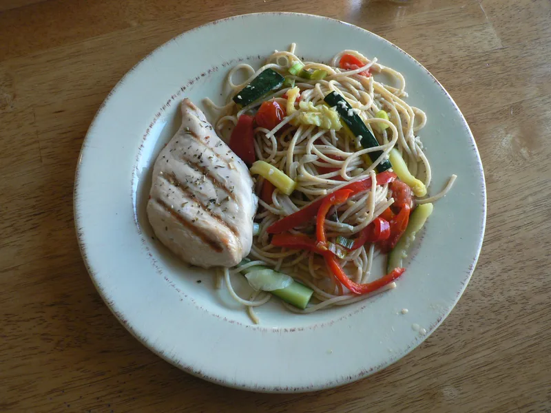 This bright and flavorful dish combines tender pan-seared chicken breasts with a tangy lemon-caper sauce, served over spaghetti tossed with fresh summer vegetables. Bell peppers, zucchini, yellow squash, and cherry tomatoes create a colorful medley that pairs beautifully with the classic piccata flavors. The vegetables are sauteed until crisp-tender and combined with pasta, fresh basil, and Parmesan cheese. Perfect for a lighter summer dinner that showcases seasonal produce while delivering the satisfying comfort of traditional chicken piccata. The lemony pan sauce ties everything together for a restaurant-quality meal at home.