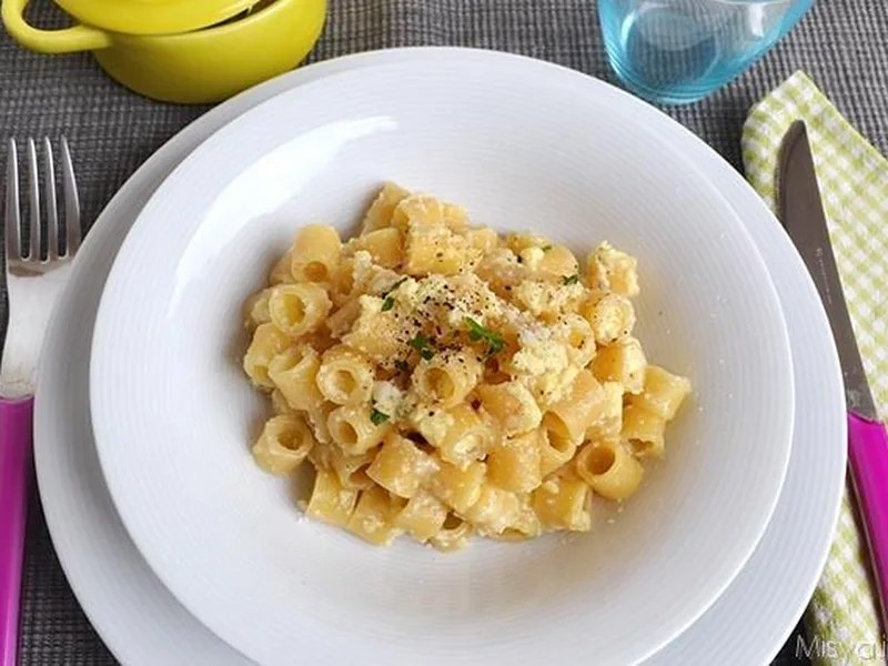 Roman pasta dish combining eggs, hard cheeses, and lard in a creamy sauce. Tubettoni pasta is tossed with a mixture of beaten eggs, Parmigiano-Reggiano, Pecorino Romano, and parsley, then bound together off heat to create a silky, uniform coating. Finished with cracked black pepper and fresh parsley.