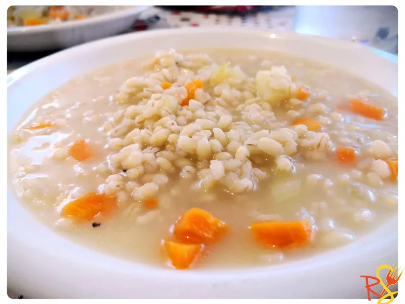 Pearl barley soup is a rustic, deeply satisfying one-pot meal built on tender barley grains simmered in beef broth with sweet root vegetables. The barley absorbs the savory broth while maintaining a soft, creamy texture that makes the soup naturally hearty without cream. What sets this version apart is the foundational soffritto—onion, carrot, and celery sautéed in butter first—which layers flavor before the barley even hits the pan. This classic approach creates richness and depth impossible in quick versions. The soup arrives warm and homey: soft vegetables, plump barley, and gentle bay leaf fragrance. Serve it to anyone craving comfort food that feels restaurant-quality but comes from your kitchen. Perfect for cool-weather dinners, Sunday suppers, or when you want something nourishing and filling. Finish with fresh chives, olive oil, and Parmesan at the table for brightness against the deep savory base.