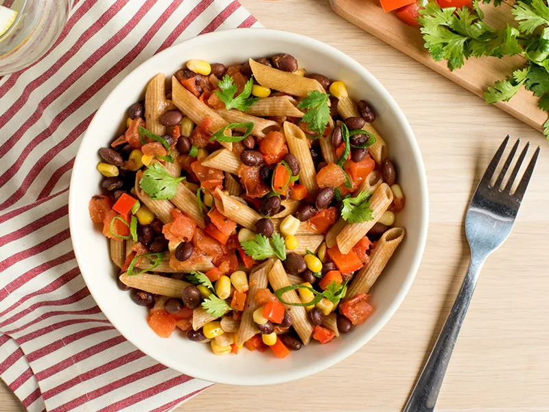 Penne with Black Bean and Corn Salsa
