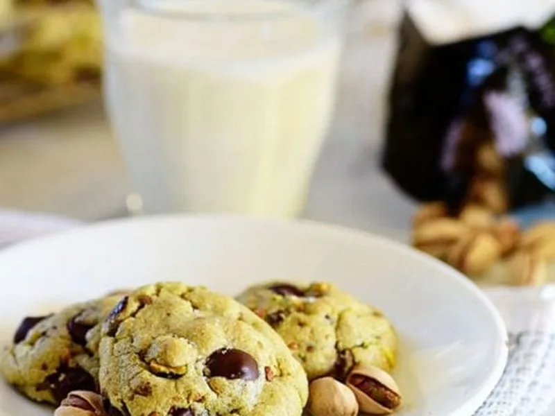 Fold in chocolate chips and pistachios. Refrigerate dough for at least 30 minutes.