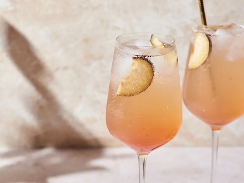 Add 2 ounces plum-ginger cordial to each glass.
