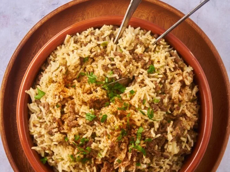 A faithful recreation of Popeye's famous Cajun rice that captures the restaurant's signature bold flavors and unique texture. Ground beef and minced chicken gizzards provide the authentic meaty base, while Creole seasoning, cayenne, and celery seed deliver the characteristic spicy kick. The rice absorbs rich beef broth during cooking, creating a savory foundation that perfectly complements the seasoned meat mixture. This copycat version brings the beloved fast-food side dish to your home kitchen, ideal for family dinners or as a hearty side for barbecue gatherings.