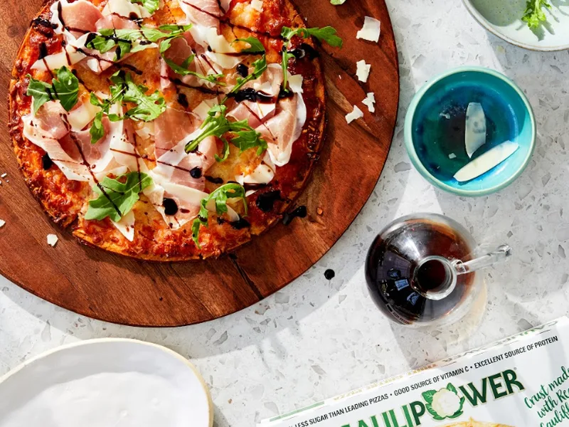 Prosciutto and Arugula Cauliflower Crust Pizza