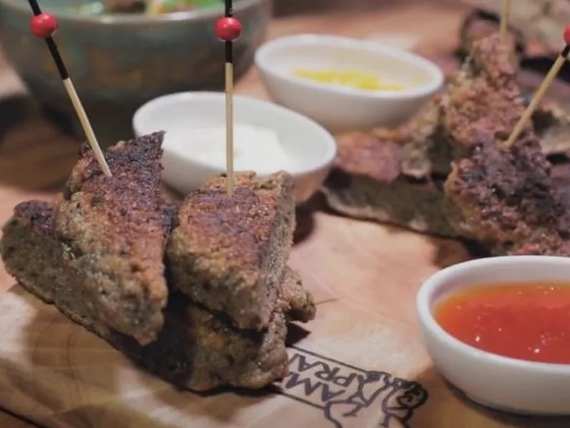 Homemade seitan strips deliver plant-based protein in a crunchy, satisfying appetizer perfect for snacking straight from the kitchen or entertaining. Made from vegan protein powder mixed with finely diced vegetables—carrot, bell pepper, and onion—these strips develop a golden, crispy exterior when pan-fried in extra virgin olive oil. The tender interior contrasts beautifully with the caramelized outside, while the vegetables add natural sweetness and texture throughout. The appeal lies in its simplicity: no specialty ingredients required, minimal active time, and complete control over flavor and nutrition. Ideal for health-conscious home cooks seeking quick protein-rich snacks, meal-prep enthusiasts, and anyone wanting satisfying vegan finger foods. Serve immediately while warm and crispy as an aperitif, alongside drinks at casual gatherings, or pack for on-the-go nutrition. This version stands apart by emphasizing vegetable integration directly into the dough rather than garnishing, creating flavor cohesion and visual appeal.