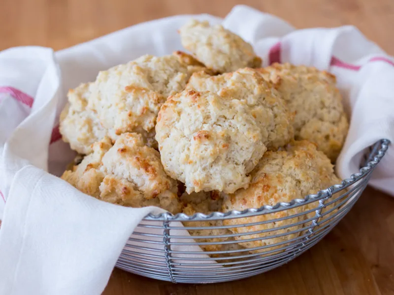 Buttery drop biscuits loaded with sharp cheddar cheese, made by cutting cold butter into flour for a tender crumb. Mixed with milk and baked until golden, these require minimal shaping and come together in under 30 minutes. Perfect warm from the oven or at room temperature.