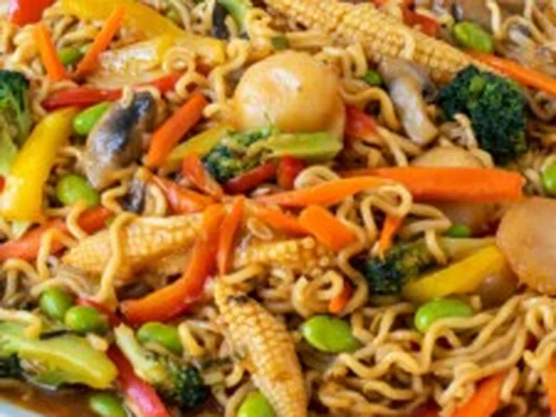 Quick Ramen Vegetable Stir Fry with Savory Soy Maple Sauce