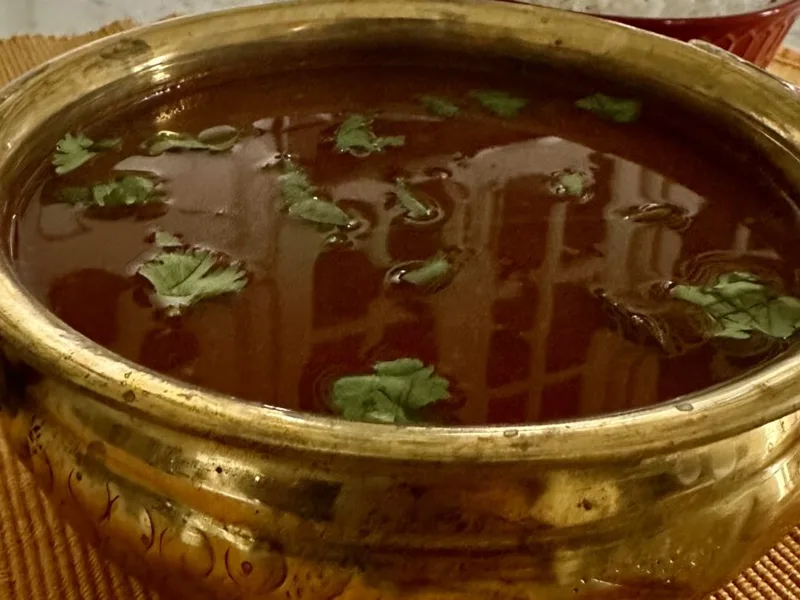 Mysore Tomato Rasam with Tamarind and Toor Dal