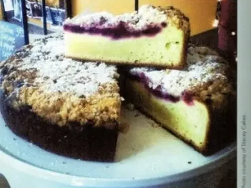 A sophisticated two-layer coffee cake that combines a tender butter cake base with a rich cream cheese custard filling studded with fresh raspberries and huckleberries, all crowned with a buttery crumb topping. The cream cheese layer stays creamy and slightly custardy after baking, providing luxurious contrast to the cake's gentle crumb and the tart pop of berries. The crumb topping adds textural interest and golden-brown richness. This is an impressive yet achievable cake for home bakers comfortable with layering techniques. Serve it at brunch, afternoon tea, or as a special breakfast treat. The berry filling makes it seasonally appropriate for summer entertaining. Baking in two pans creates a particularly elegant presentation, though the method works equally well in a single larger pan.