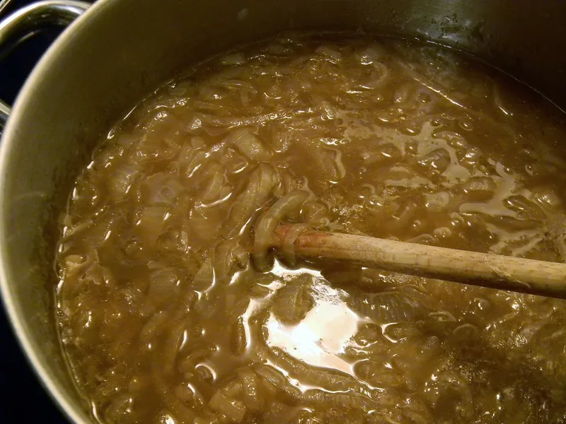 Do not rush the onion caramelization by raising heat too high to avoid burnt, bitter onions instead of sweet, caramelized ones.
