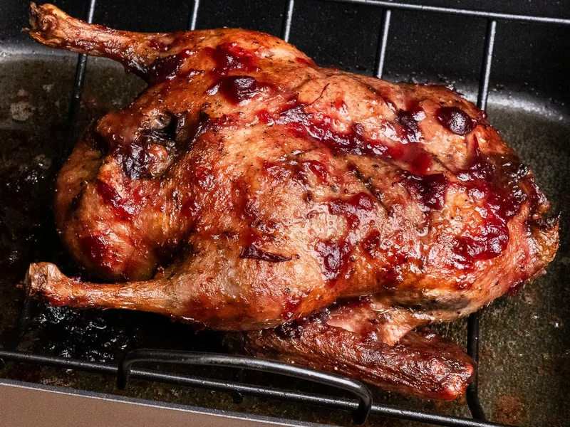 Roast Duck with Cranberry Glaze, Crispy Skin
