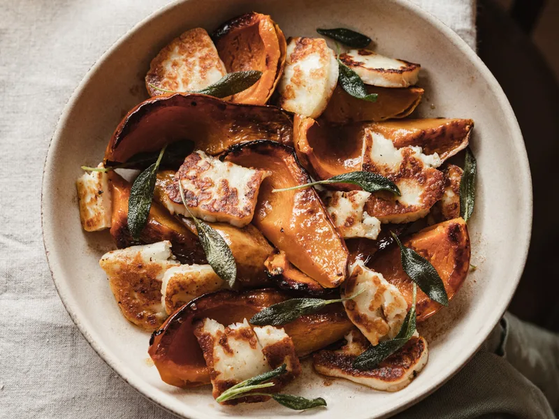 Roasted Honeynut Squash with Crispy Sage and Fried Halloumi