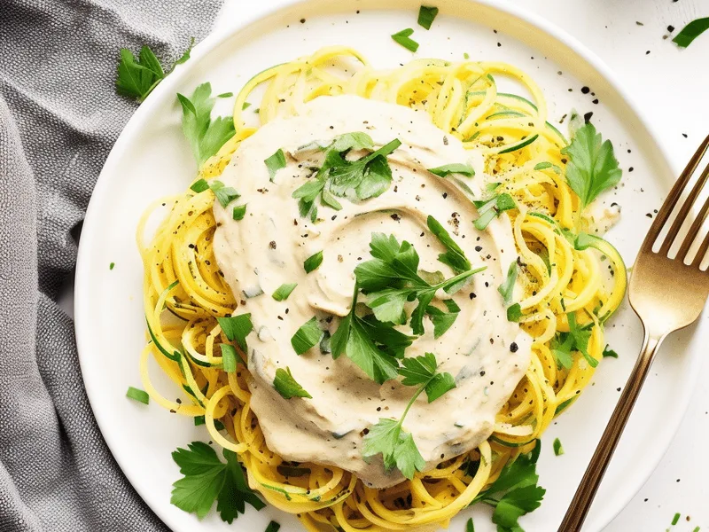 This plant-based twist on classic Alfredo transforms roasted spaghetti squash into tender strands that perfectly hold a rich, creamy sauce made from blended cashews and nutritional yeast. The sauce delivers surprising richness without dairy, while garlic adds aromatic depth. Perfect for weeknight dinners or entertaining guests seeking lighter comfort food options. The naturally nutty sweetness of roasted spaghetti squash pairs beautifully with the savory, cheese-like flavors of nutritional yeast, creating a satisfying meal that feels indulgent yet wholesome.